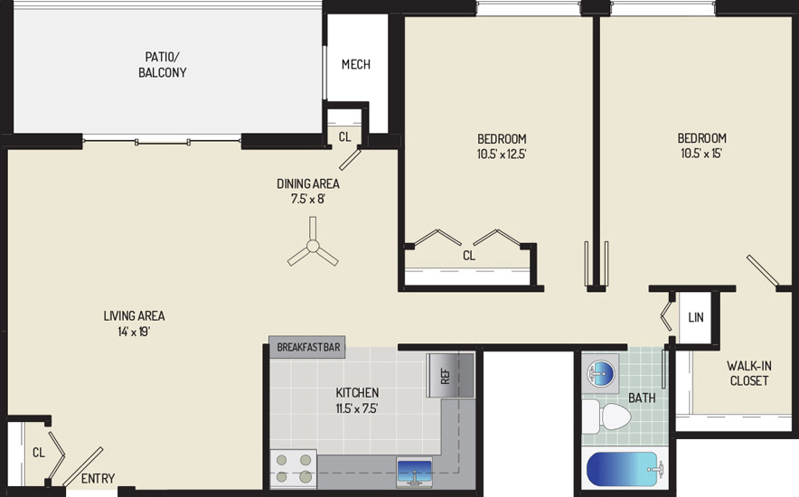 3 Bedrooms + 2 Baths 3 Beds 2 Baths 1280 sqft $1,789 - $1,893 per month Inquire for Availability View Details