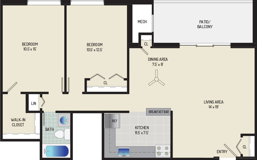 3 Bedrooms + 2 Baths